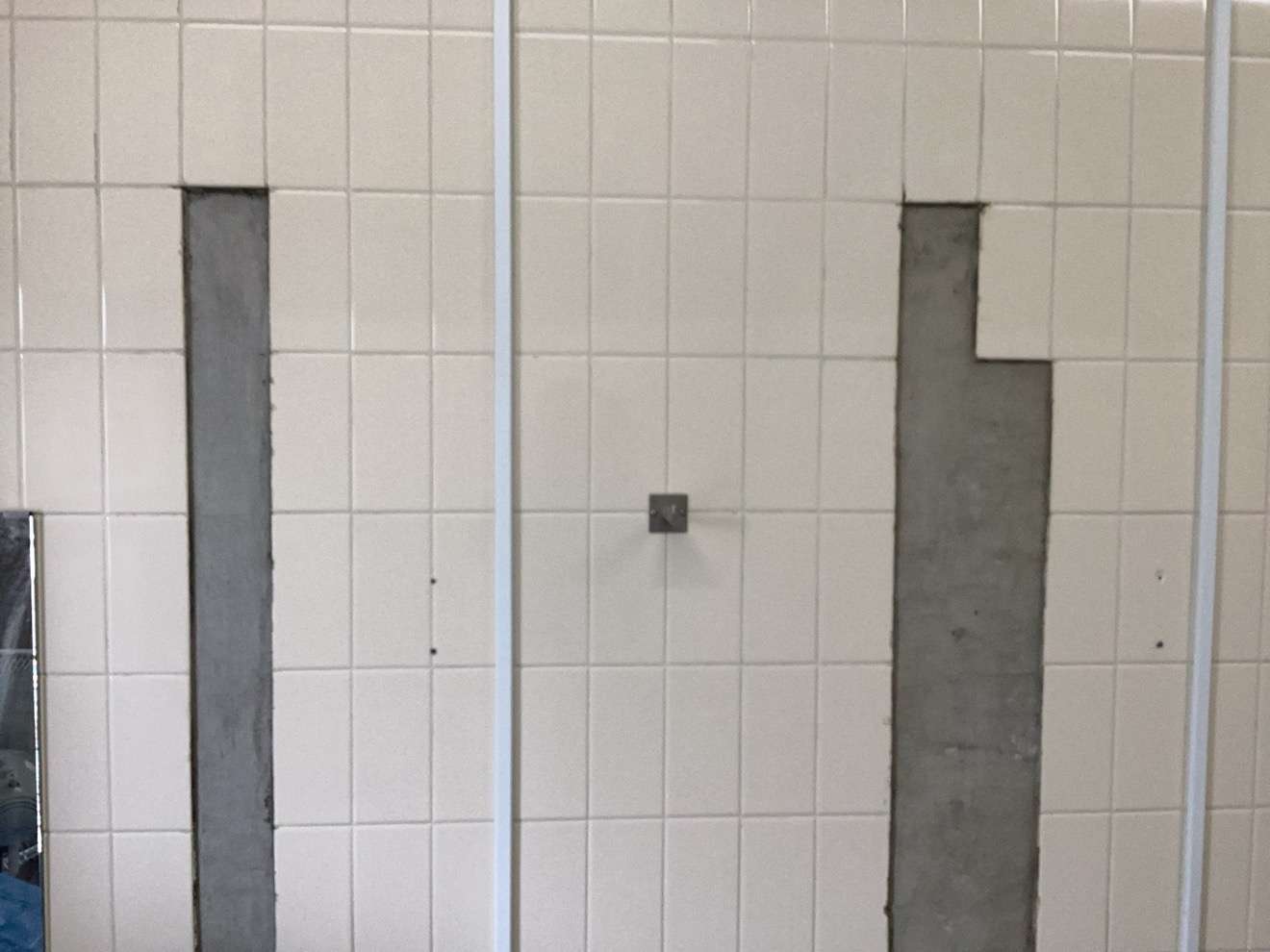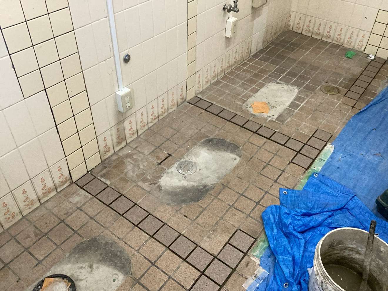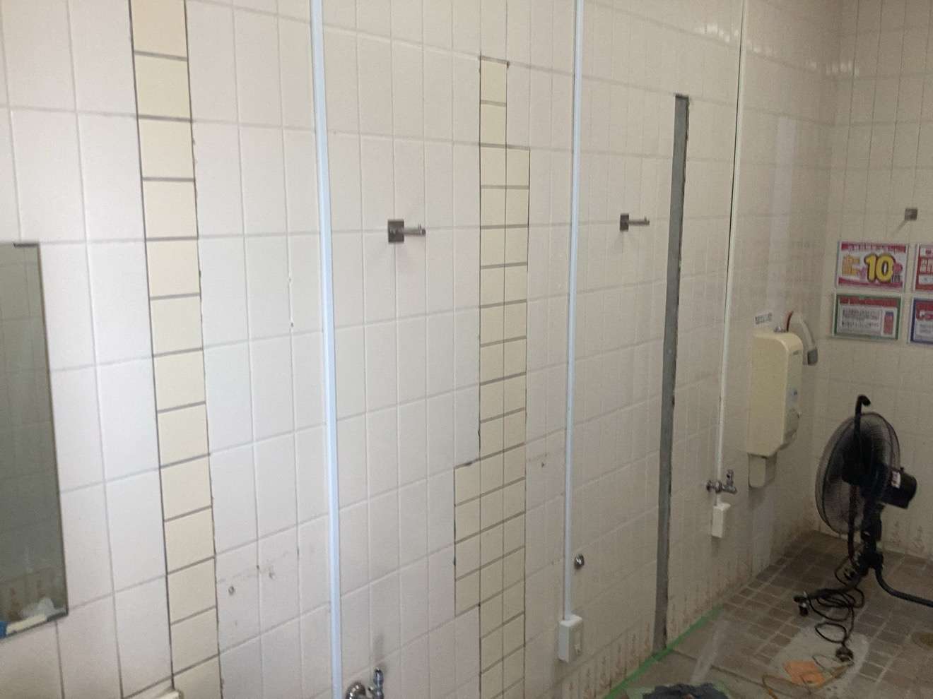 タイル復旧後は、新しく仕切壁を設置し