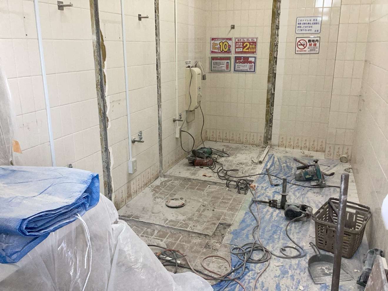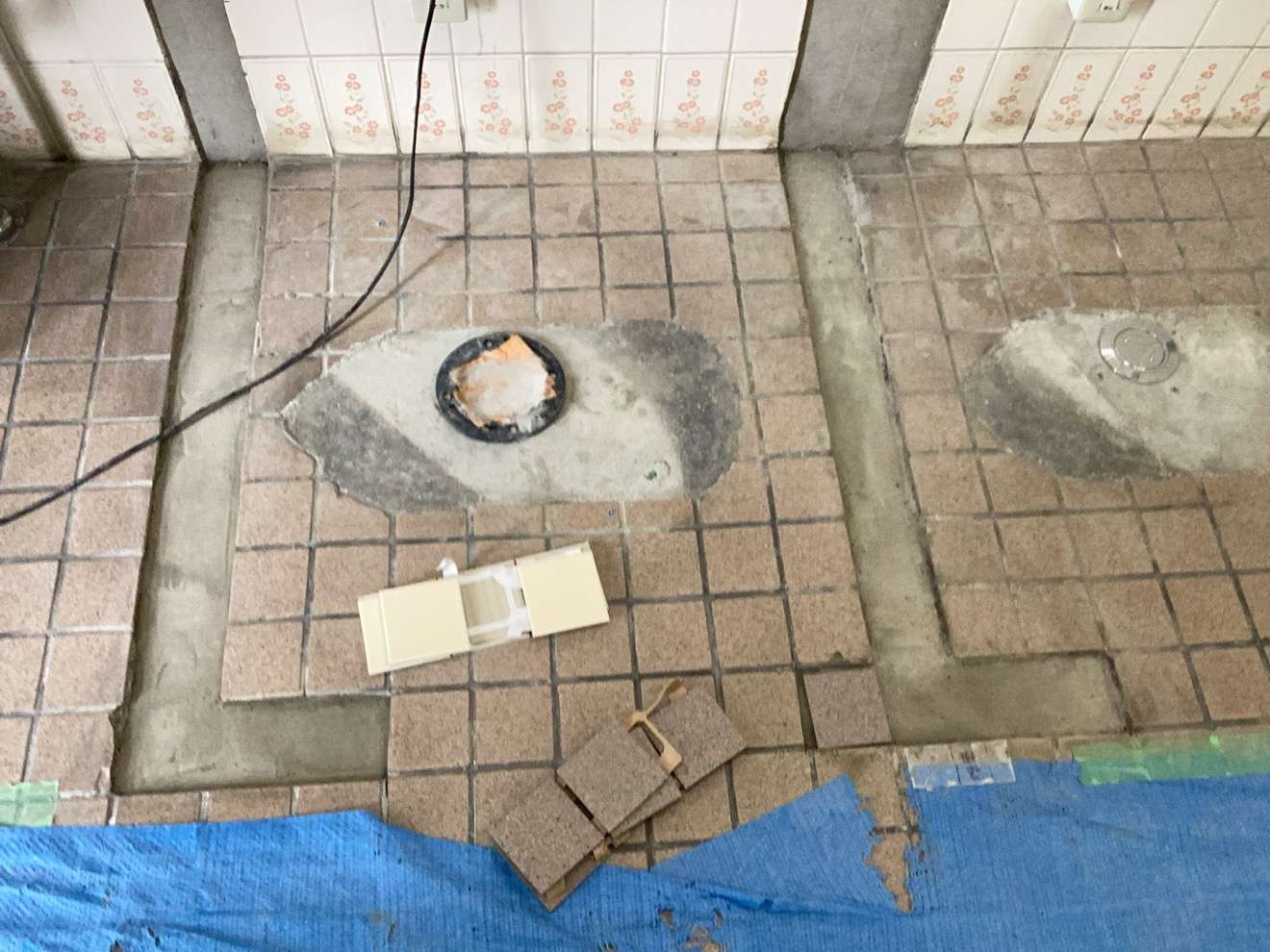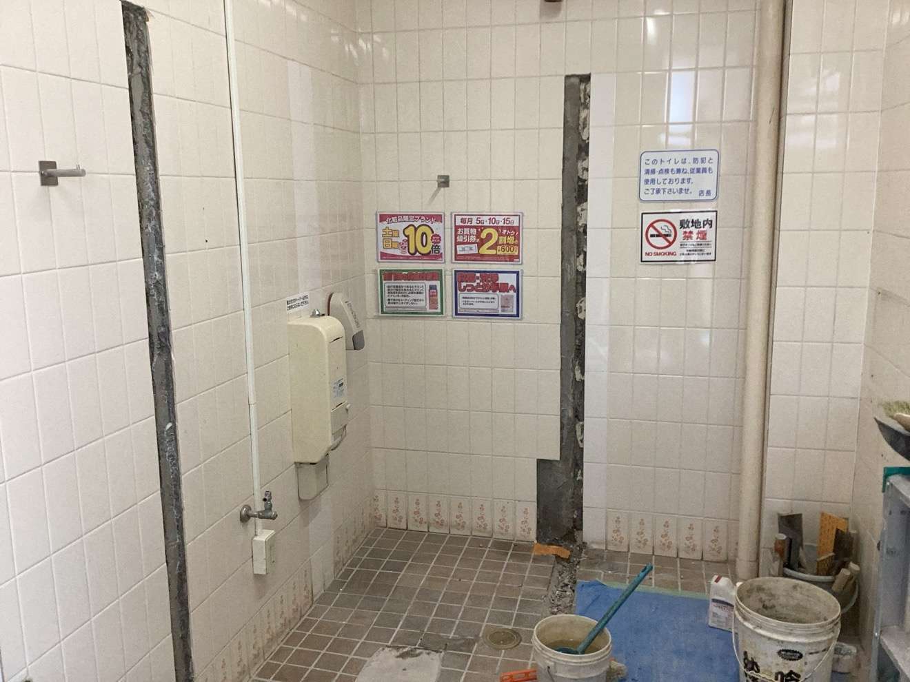 ここから、新規レイアウトにするために床、壁のタイル貼り付け、補修の為の